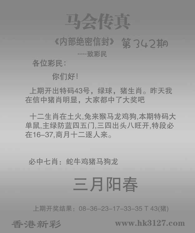 | 342期: ⑦肖 | 猪蛇狗猴虎马鸡 | 龙38中 |