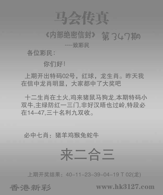 | 347期: ⑥肖 | 狗羊马龙兔蛇 | 马48中 |