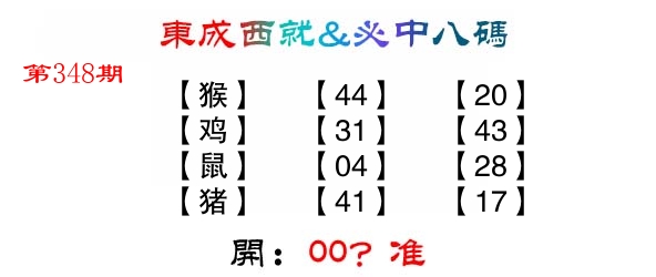 | 348期: ④肖 | 虎狗羊鸡 | ????中 |